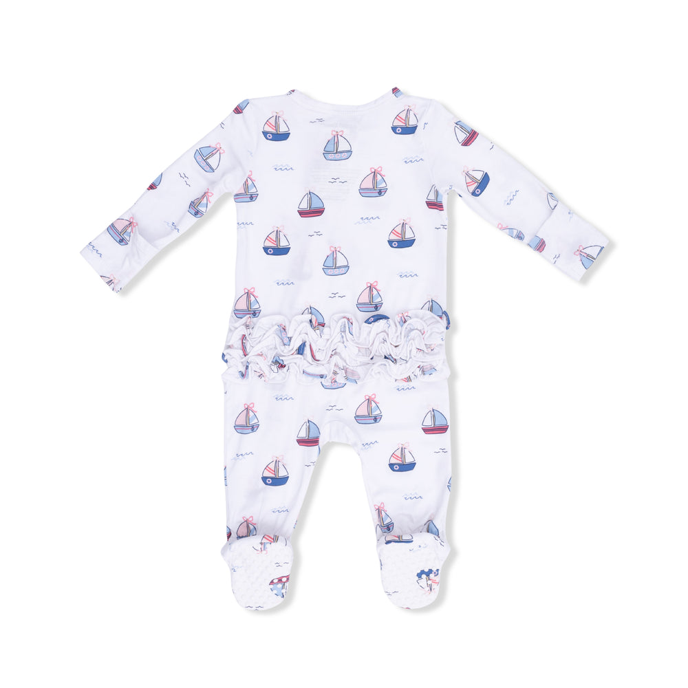 Bubbly Sailboats Pink - 2 Way Ruffle Back Zipper Footie