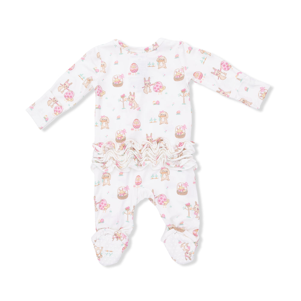 Easter Egg Hunt Pink - 2 Way Ruffle Back Zipper Footie