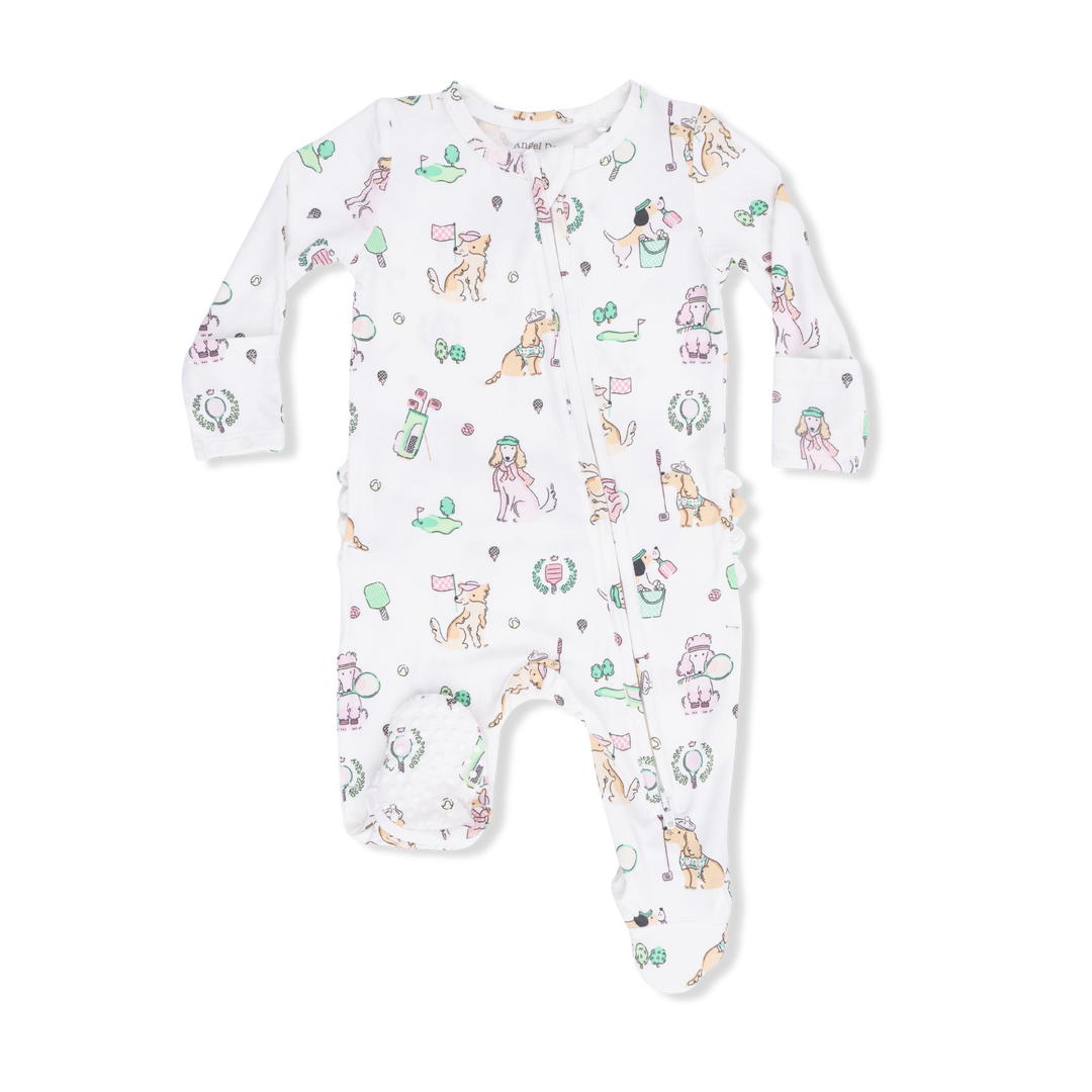 Country Club Dogs Pink - 2 Way Ruffle Back Zipper Footie