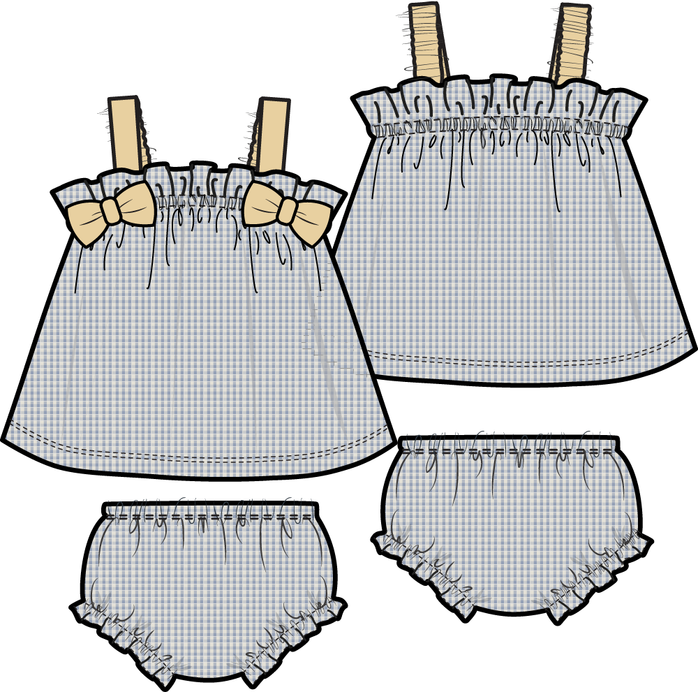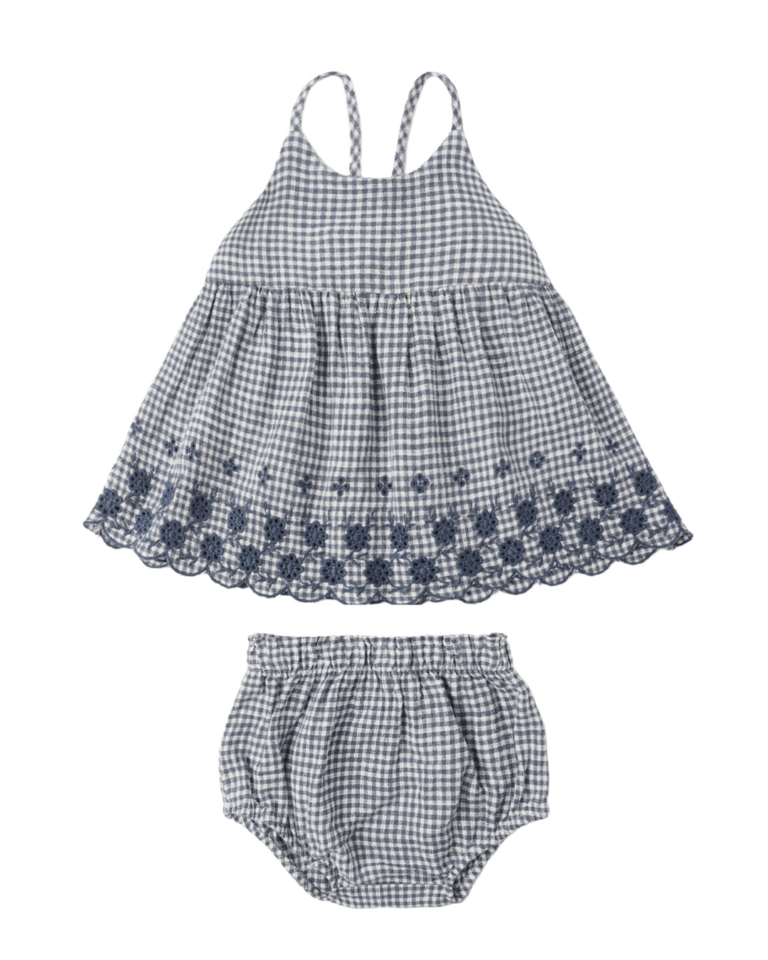 Micro Gingham Blue Blizzard - Top With Bows And Ruffle Leg Bloomer