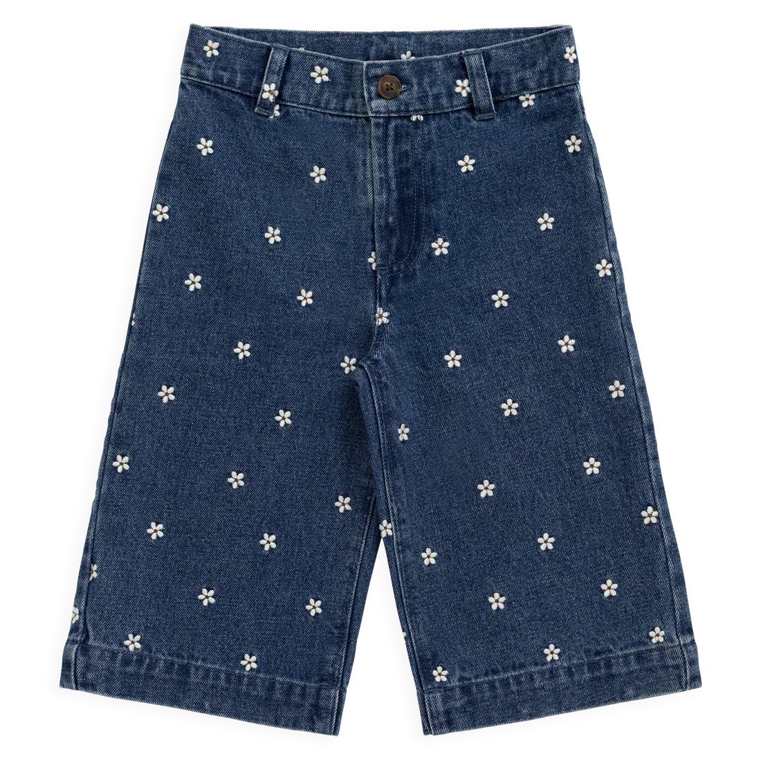 The Amandine Pant in beautiful Josie Floral Denim print is a timeless piece designed for comfort and elegance. Featuring a straight-leg silhouette, belt loops, and a delicate floral pattern.