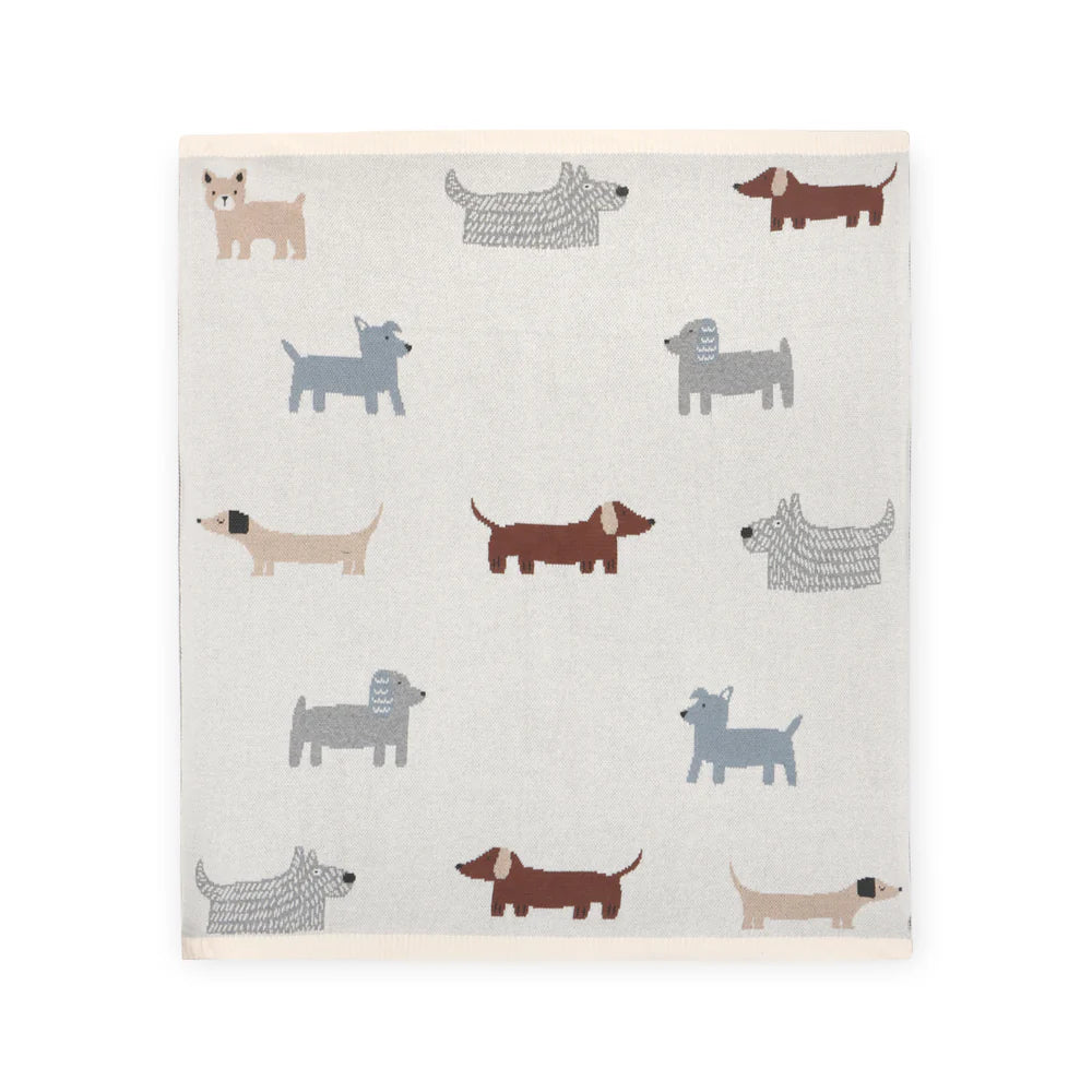 Luxurious 100% Organic Cotton Jacquard Knitted Baby Blanket featuring cute dog design.