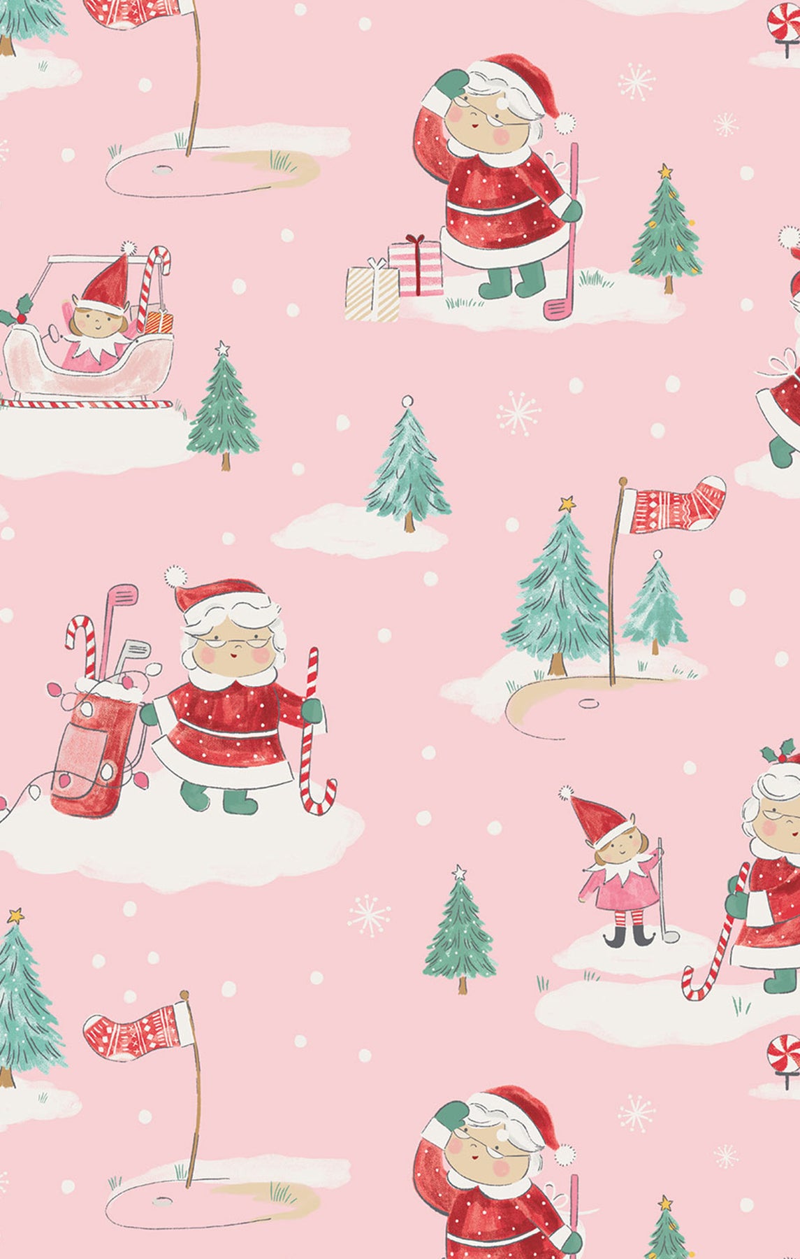 Golfing Mrs. Claus And Elves - 2 Way Zipper Ruffle Back Footie